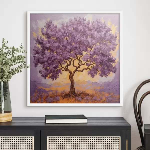Poster Árbol morado sobre fondo amarillo-folotol Nr f42272