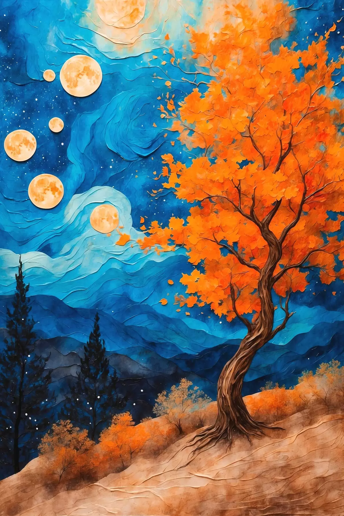 Poster Árbol creciendo en una colina de noche Nr f42274