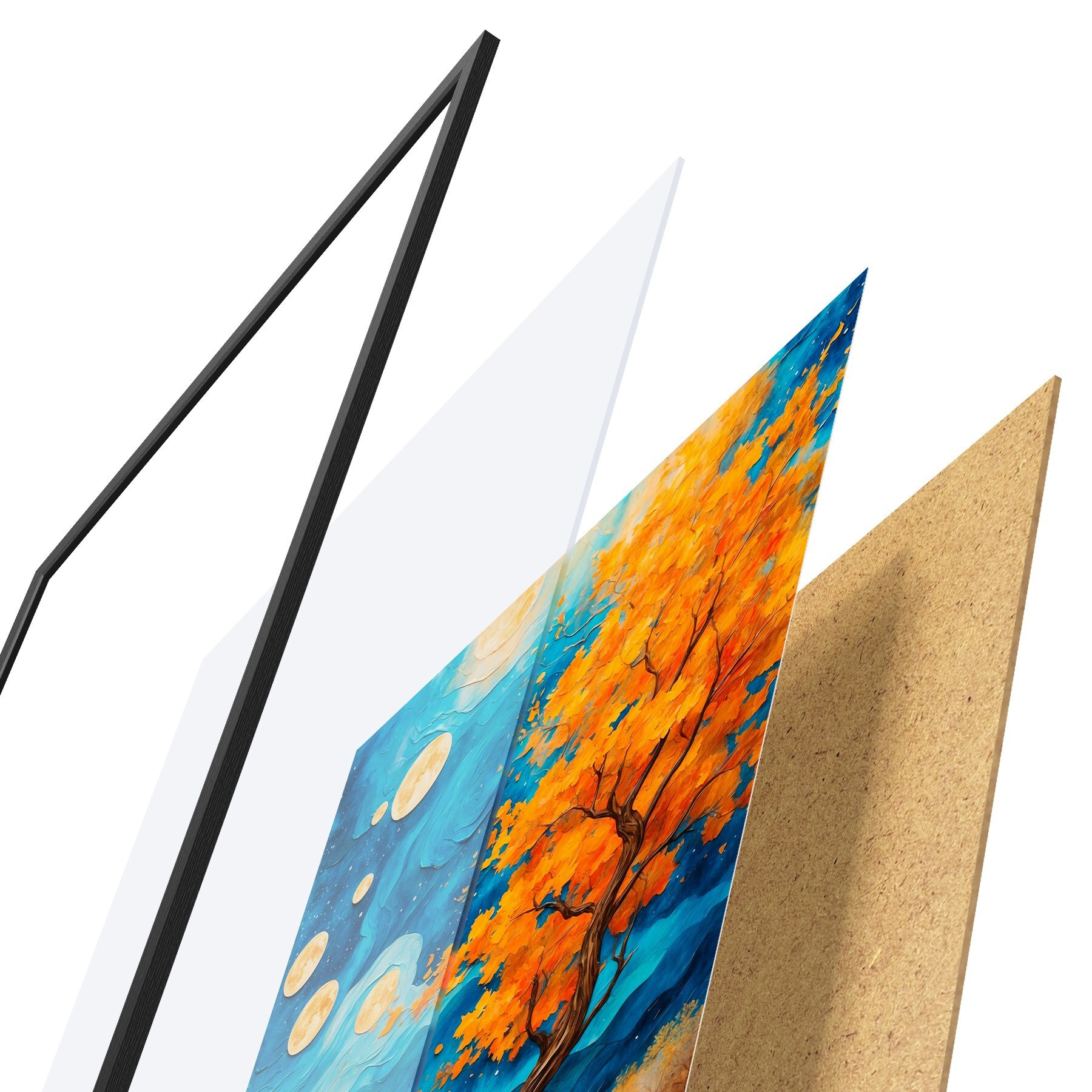 El póster consta de marco, plexiglás, imagen impresa y soporte de aglomerado. El póster puede colgarse inmediatamente en la pared gracias a los soportes de la parte posterior.