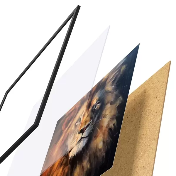 El póster consta de marco, plexiglás, imagen impresa y soporte de aglomerado. El póster puede colgarse inmediatamente en la pared gracias a los soportes de la parte posterior.