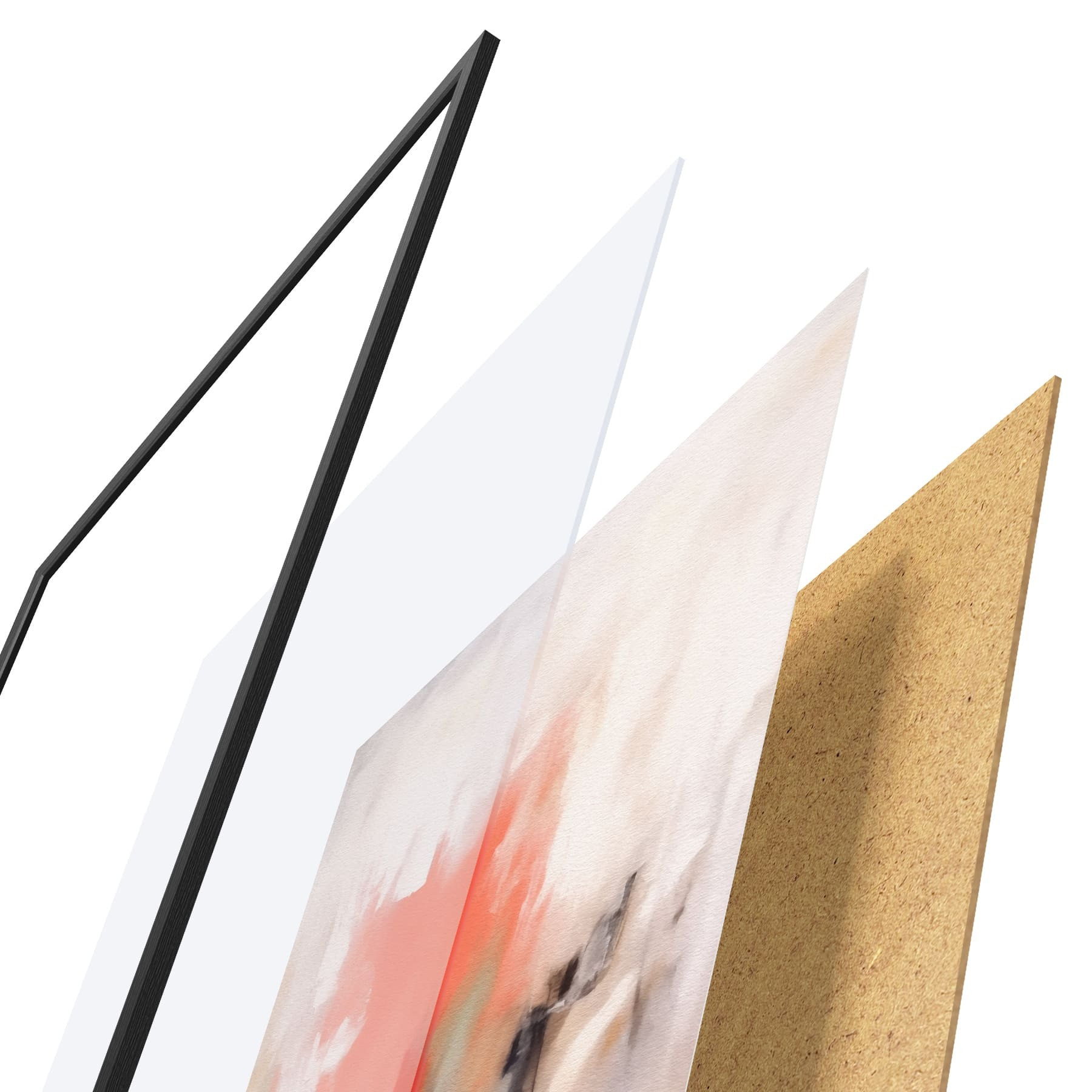 El póster consta de marco, plexiglás, imagen impresa y soporte de aglomerado. El póster puede colgarse inmediatamente en la pared gracias a los soportes de la parte posterior.