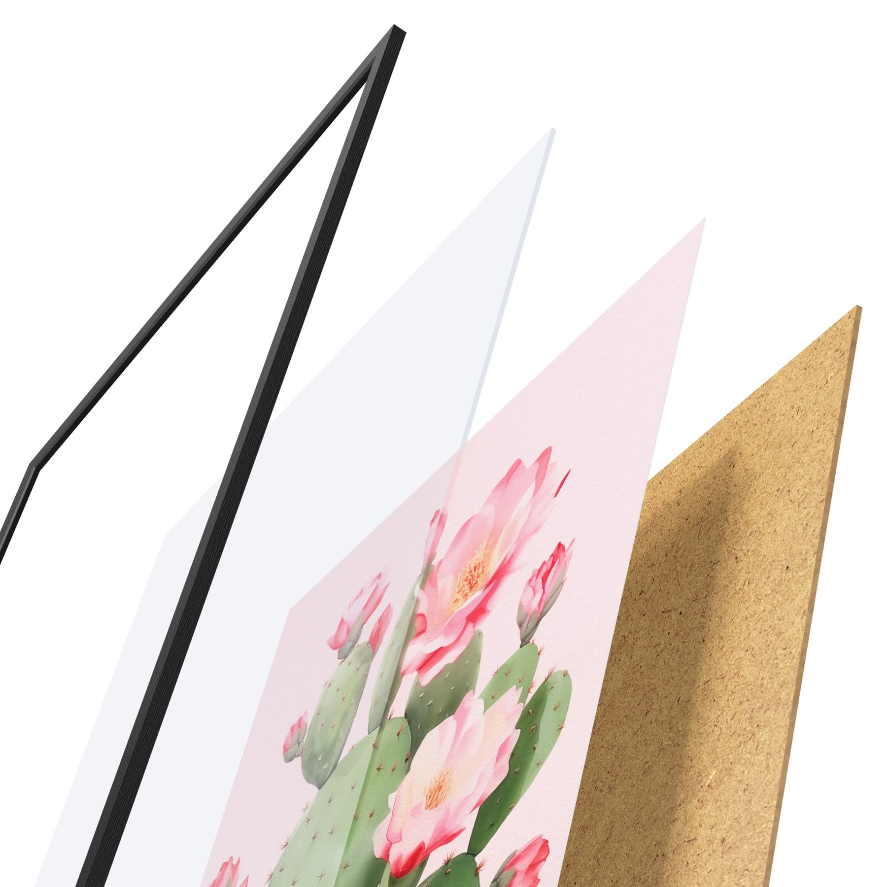 El póster consta de marco, plexiglás, imagen impresa y soporte de aglomerado. El póster puede colgarse inmediatamente en la pared gracias a los soportes de la parte posterior.