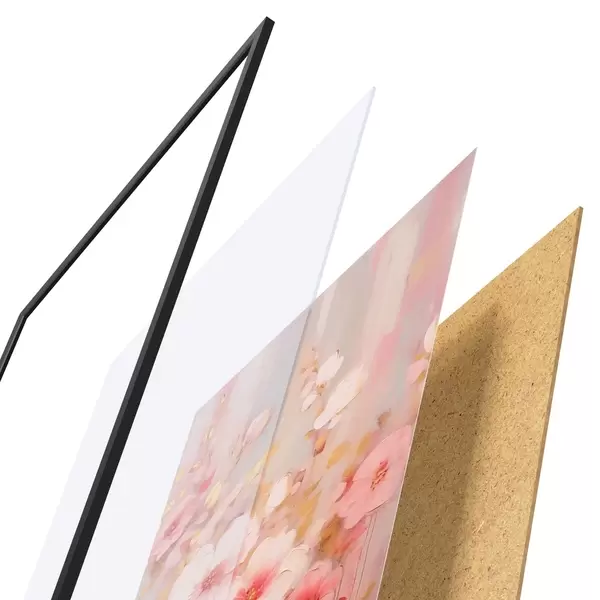 El póster consta de marco, plexiglás, imagen impresa y soporte de aglomerado. El póster puede colgarse inmediatamente en la pared gracias a los soportes de la parte posterior.