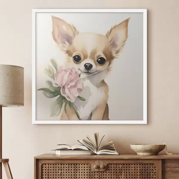 Poster Chihuahua y flor f42341