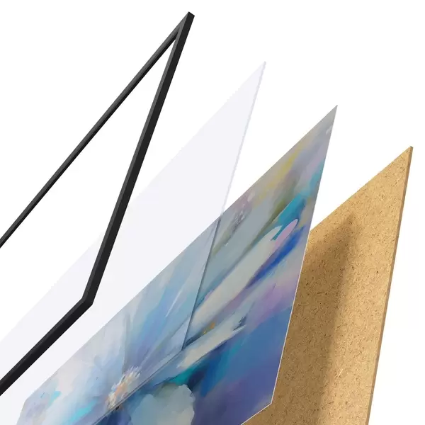 El póster consta de marco, plexiglás, imagen impresa y soporte de aglomerado. El póster puede colgarse inmediatamente en la pared gracias a los soportes de la parte posterior.