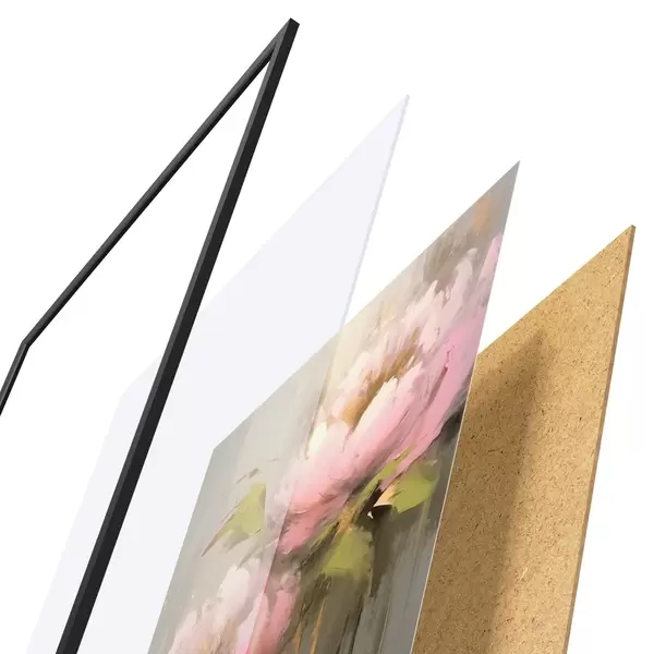 El póster consta de marco, plexiglás, imagen impresa y soporte de aglomerado. El póster puede colgarse inmediatamente en la pared gracias a los soportes de la parte posterior.