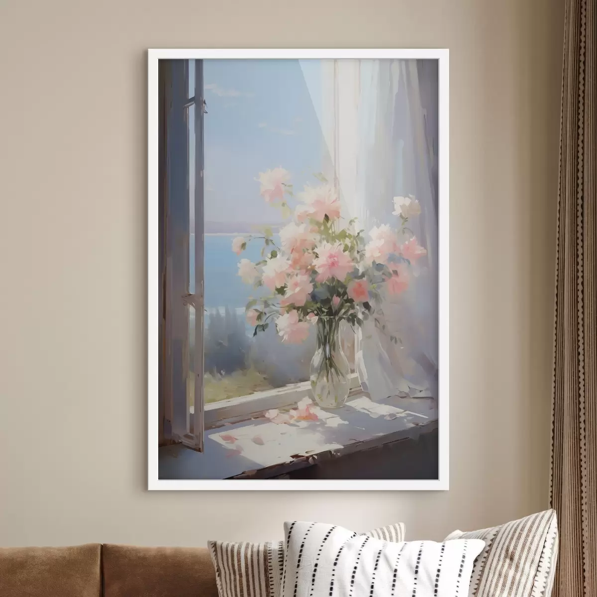 Poster Ramo de delicadas flores en un jarrón de cristal imitación pintura f42352