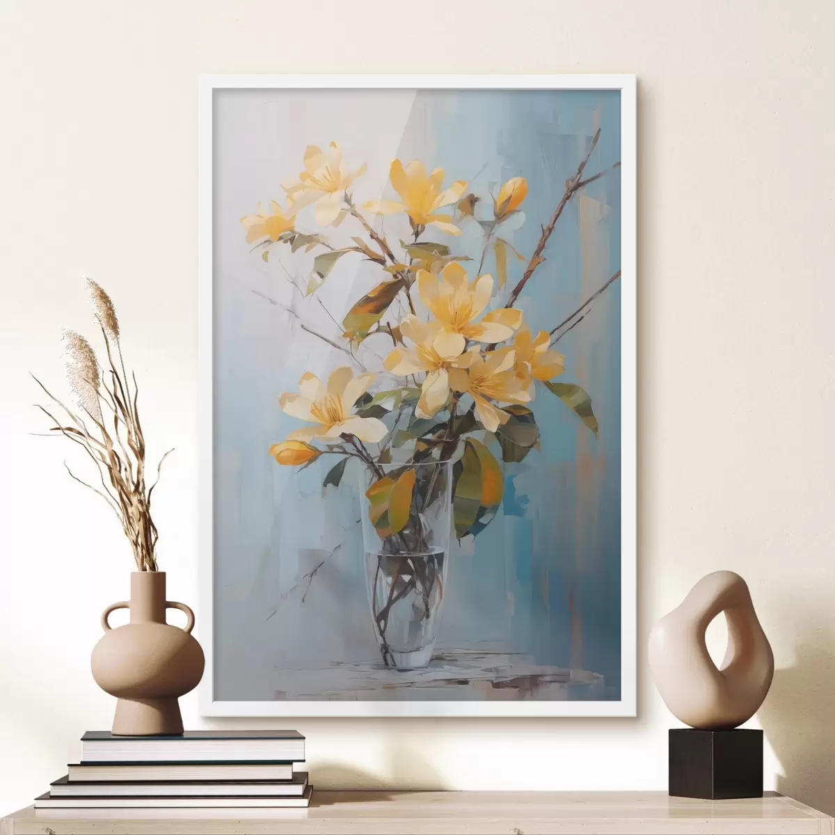Poster Ramas con flores amarillas en un jarrón imitación pintura Nr f42358
