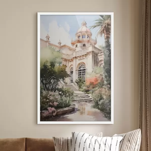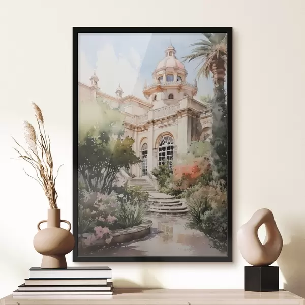 Poster Jardín cerca de la casa imitación acuarela f42362