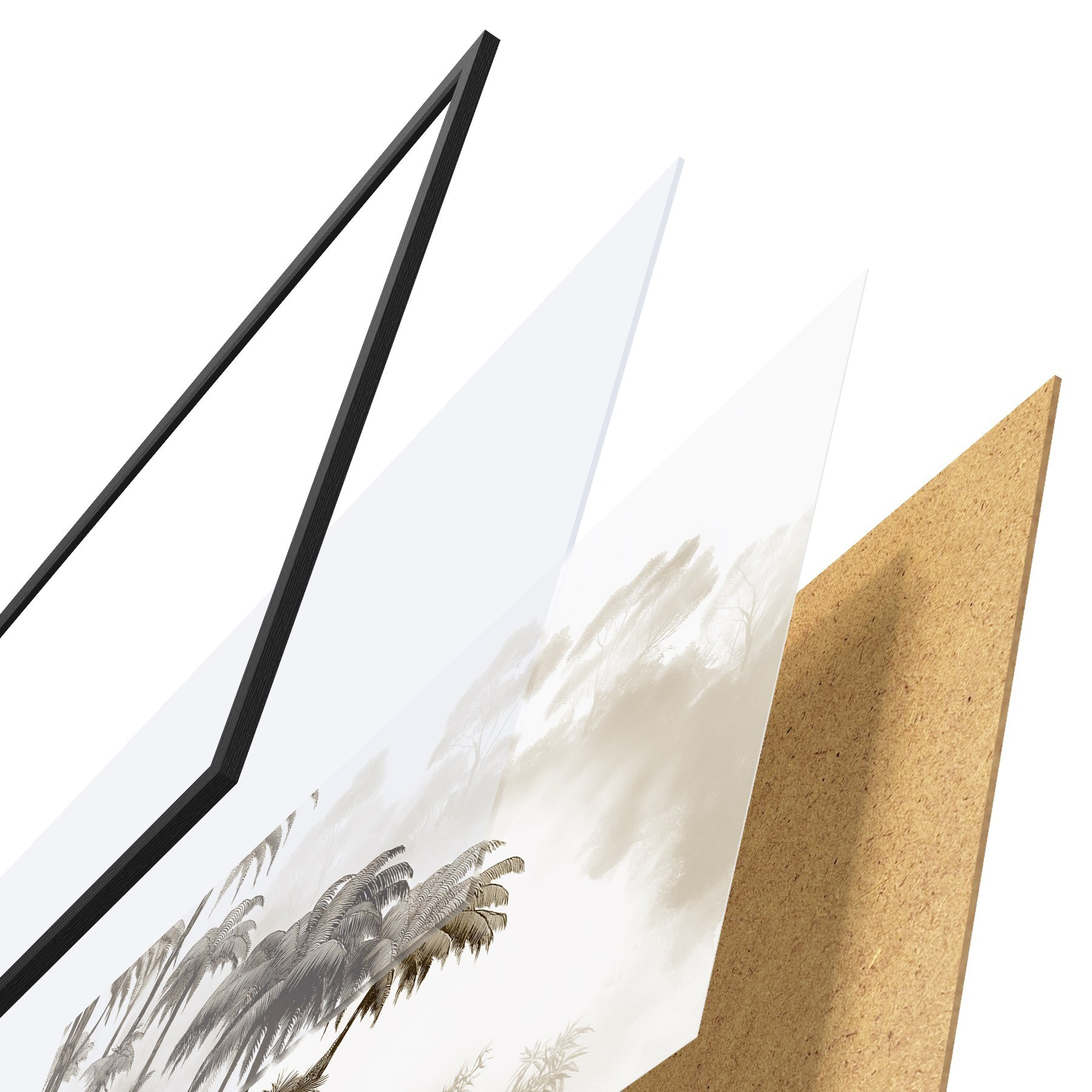 Poster Selva en la niebla, palmeras, naturaleza, colores beige f42372