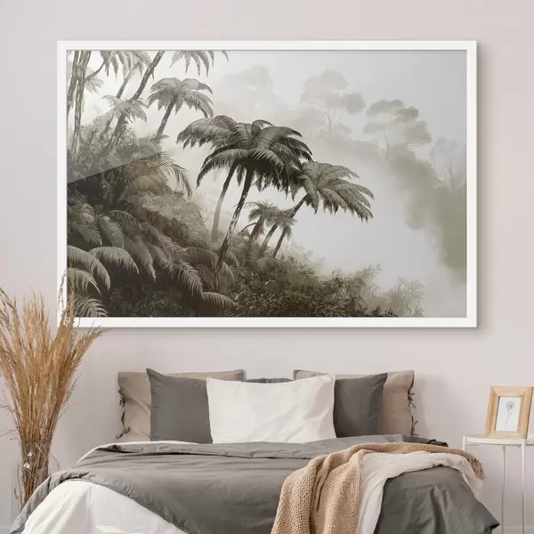 Poster Selva en la niebla, palmeras, naturaleza, colores beige Nr f42372