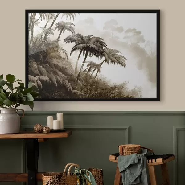 Poster Selva en la niebla, palmeras, naturaleza, colores beige Nr f42372
