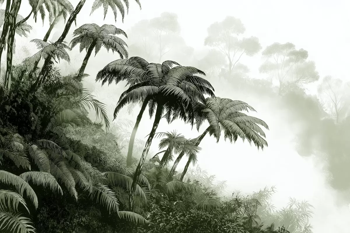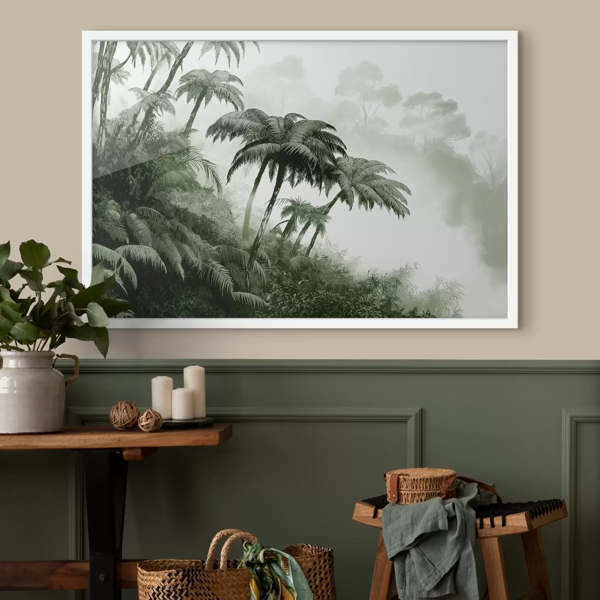 Poster Selva en la niebla, palmeras, naturaleza, colores verdes Nr f42372v1