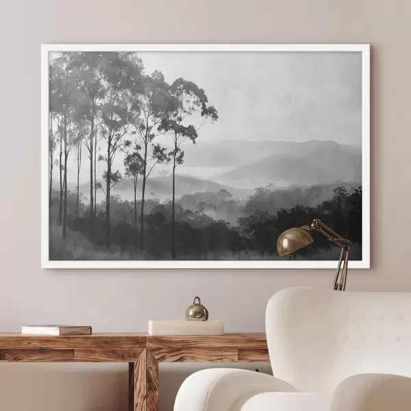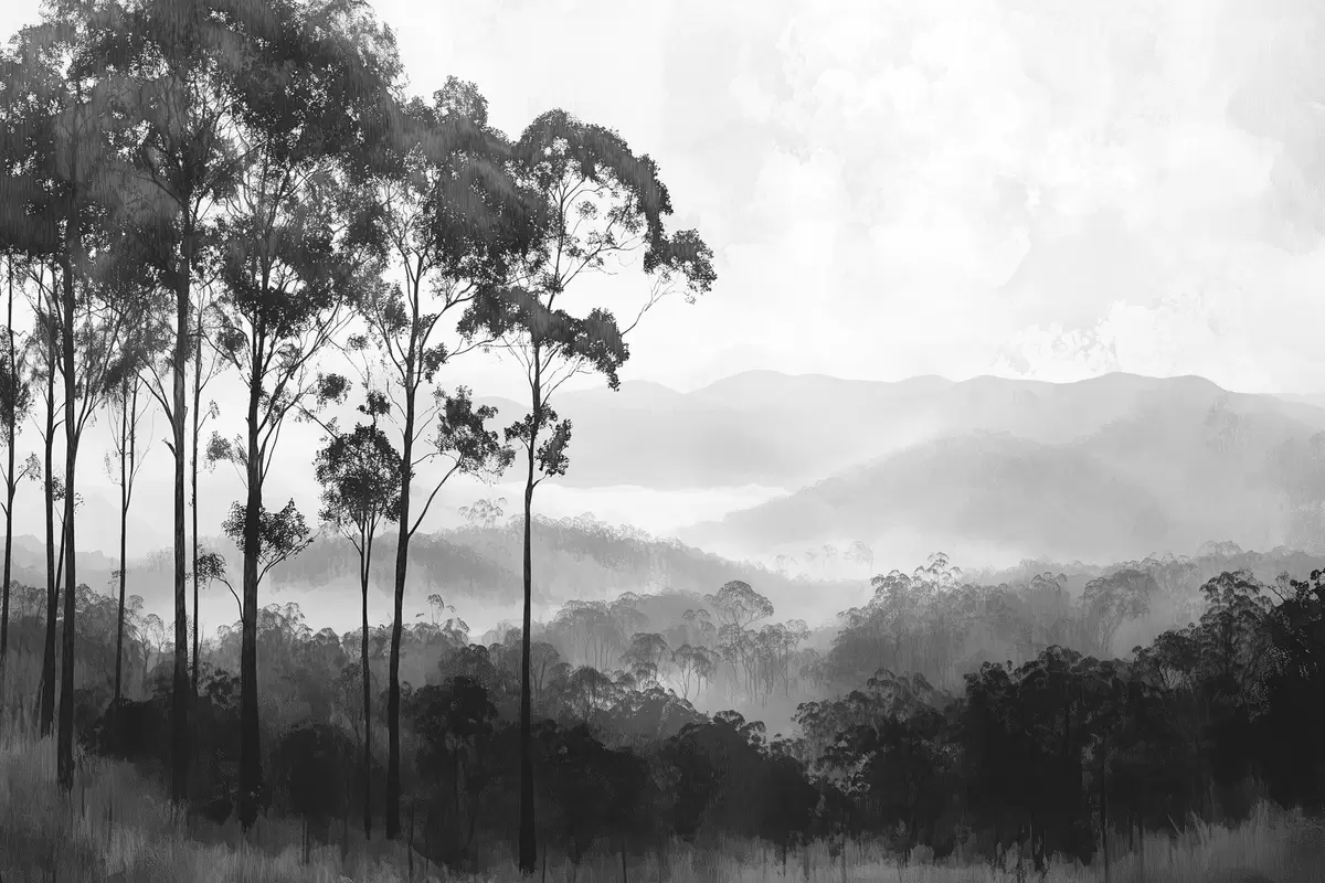 Poster Bosque místico en tonos grises, paisaje natural, árboles Nr f42373