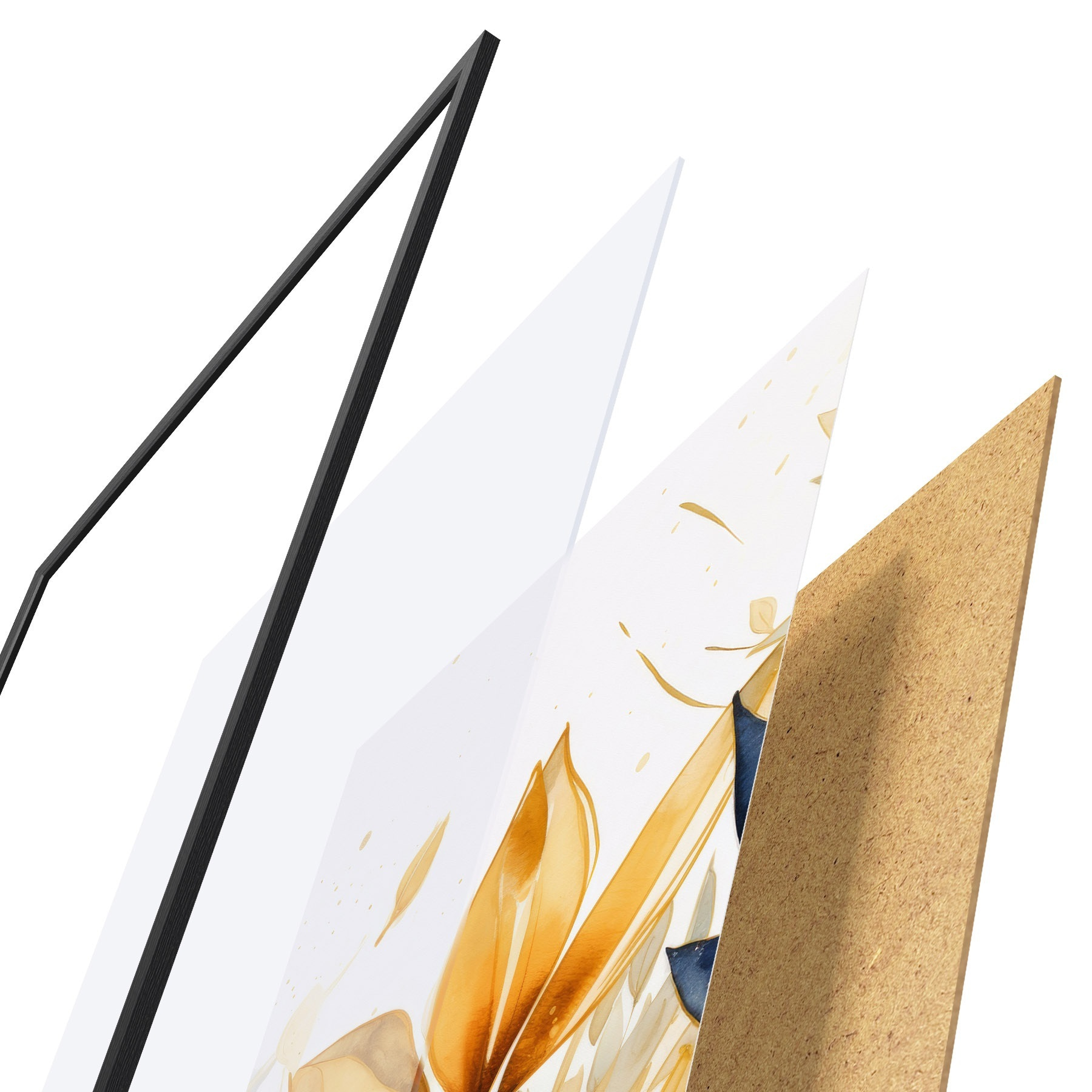 El póster consta de marco, plexiglás, imagen impresa y soporte de aglomerado. El póster puede colgarse inmediatamente en la pared gracias a los soportes de la parte posterior.