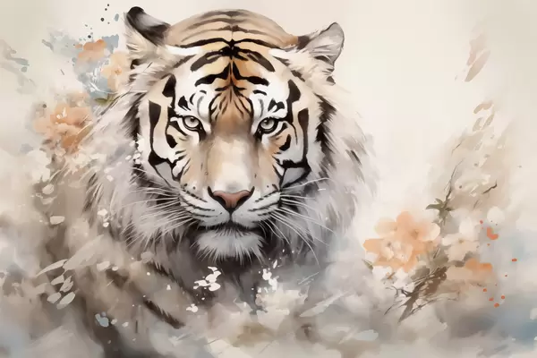 Poster Retrato abstracto de un tigre entre manchas f42421