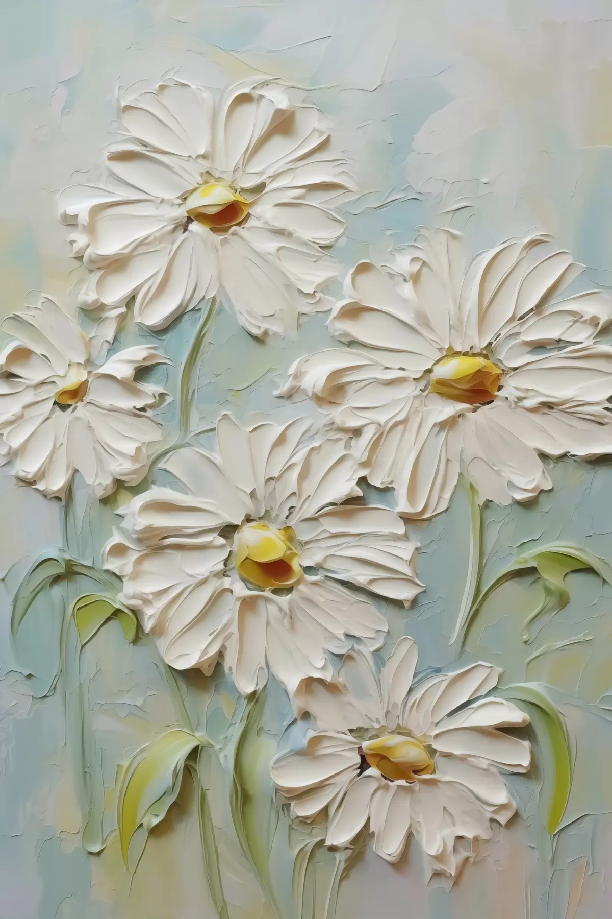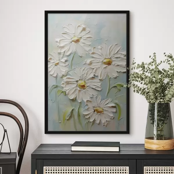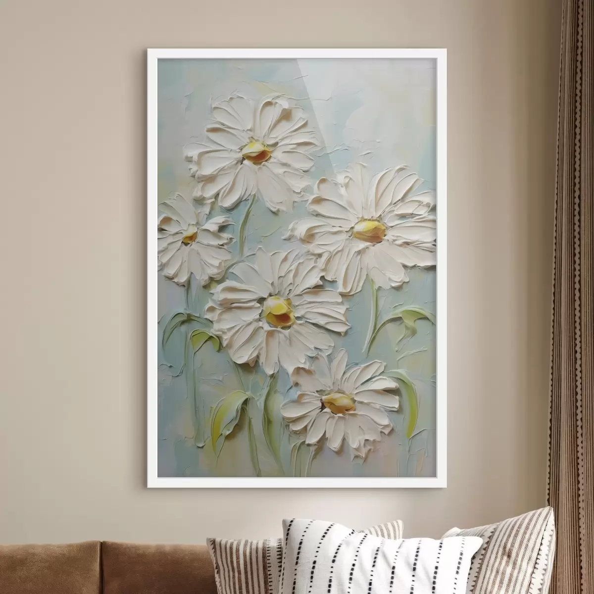 Poster Margaritas blancas imitación de trazos de pintura f42422
