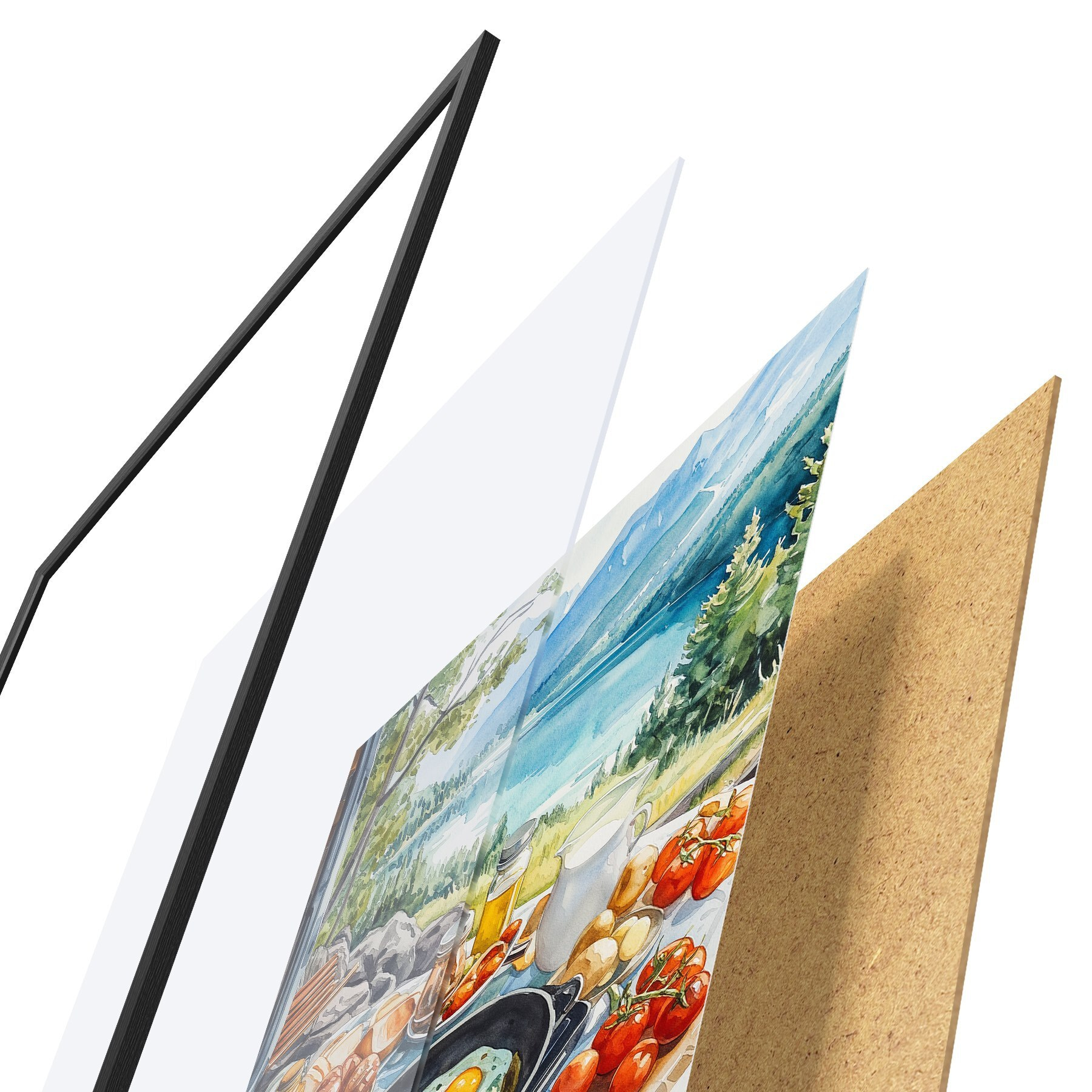 Poster Estético desayuno cerca del lago, estilo acuarela Nr f42432