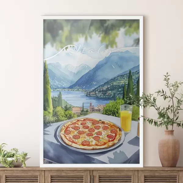 Poster Estilo acuarela, Italia, pizza, ciudad antigua, paisaje montañoso Nr f42435