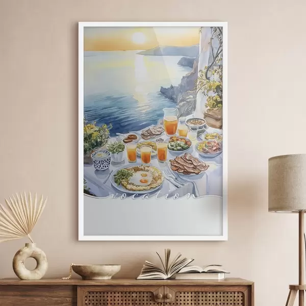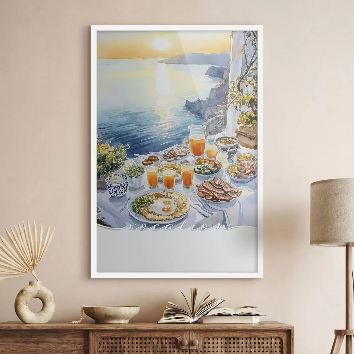Poster Vocación romántica en Grecia, estilo acuarela, desayuno, amanecer Nr f42453