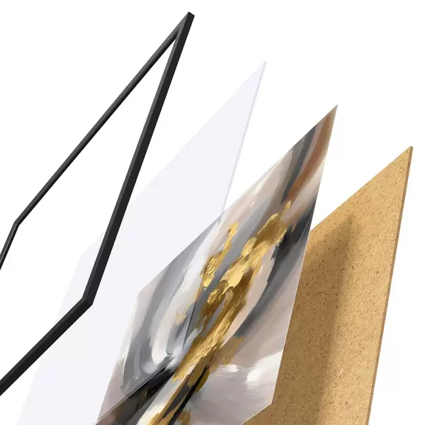 El póster consta de marco, plexiglás, imagen impresa y soporte de aglomerado. El póster puede colgarse inmediatamente en la pared gracias a los soportes de la parte posterior.
