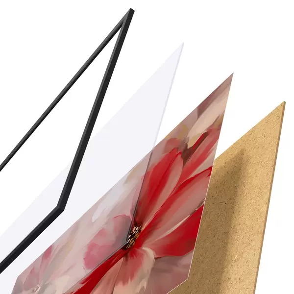 El póster consta de marco, plexiglás, imagen impresa y soporte de aglomerado. El póster puede colgarse inmediatamente en la pared gracias a los soportes de la parte posterior.