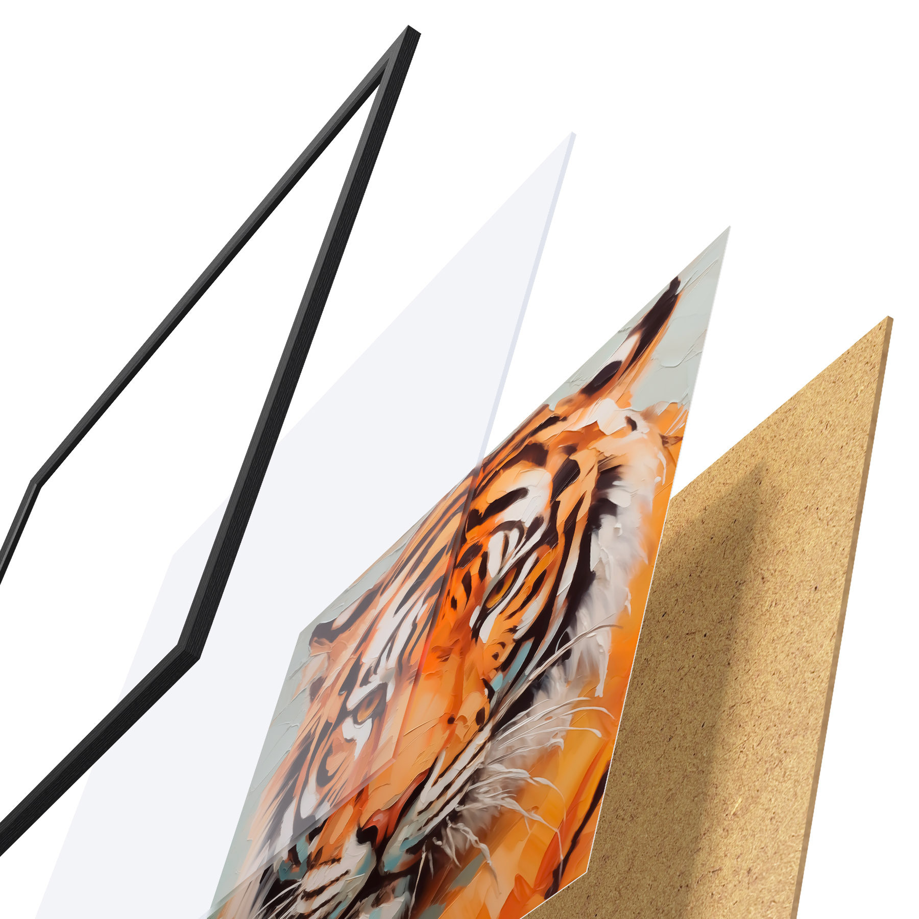 El póster consta de marco, plexiglás, imagen impresa y soporte de aglomerado. El póster puede colgarse inmediatamente en la pared gracias a los soportes de la parte posterior.