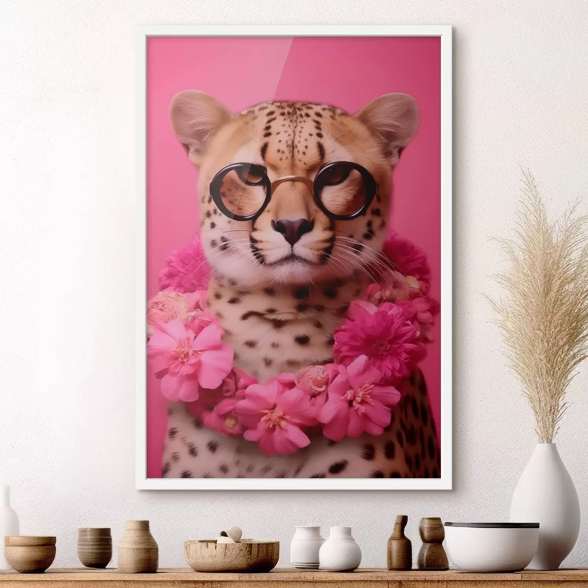 Poster Guepardo en gafas con guirnalda de flores Nr f42477