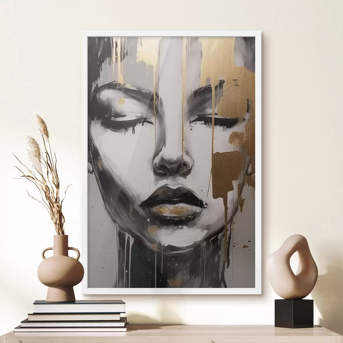 Poster Retrato en blanco y negro con elementos abstractos Nr f42481