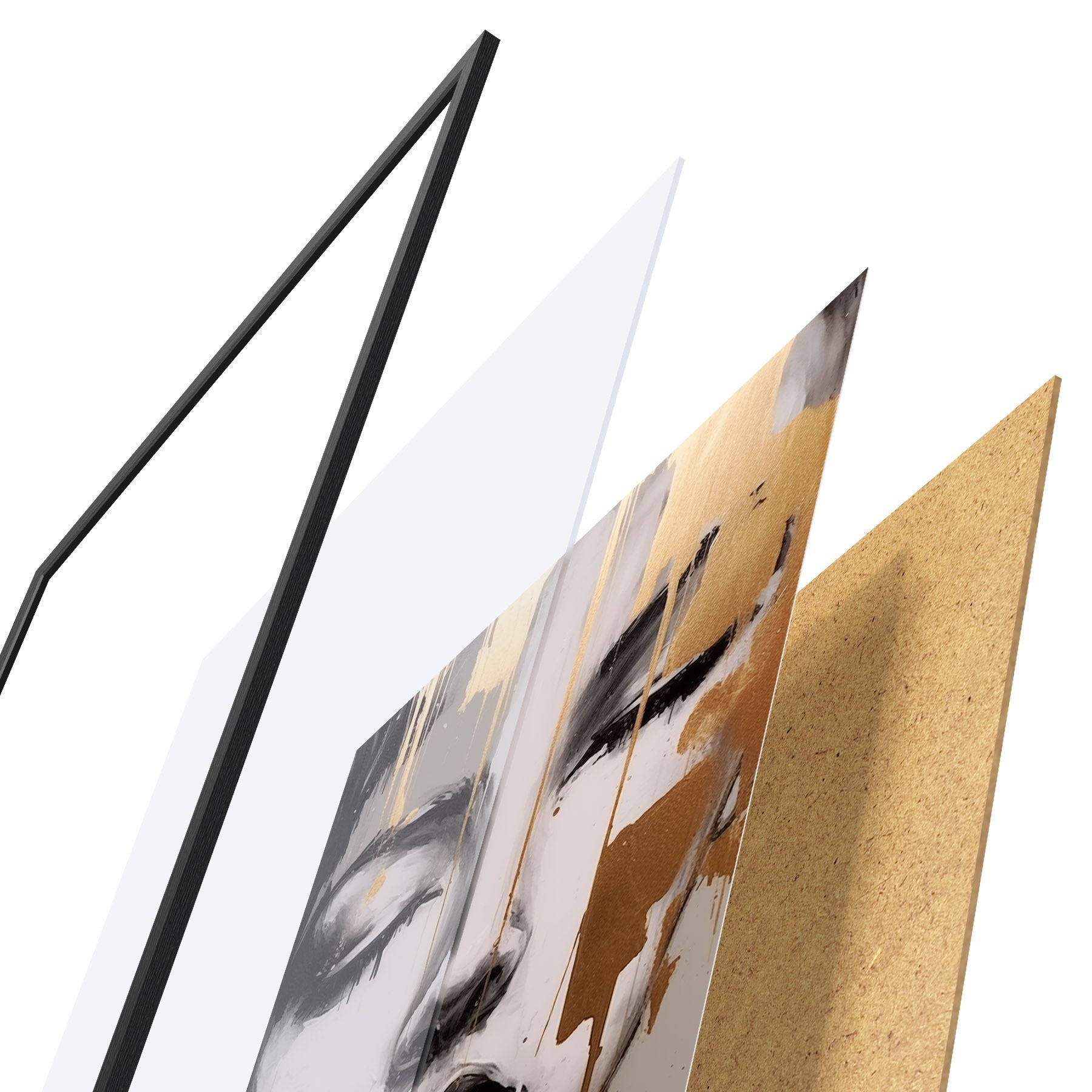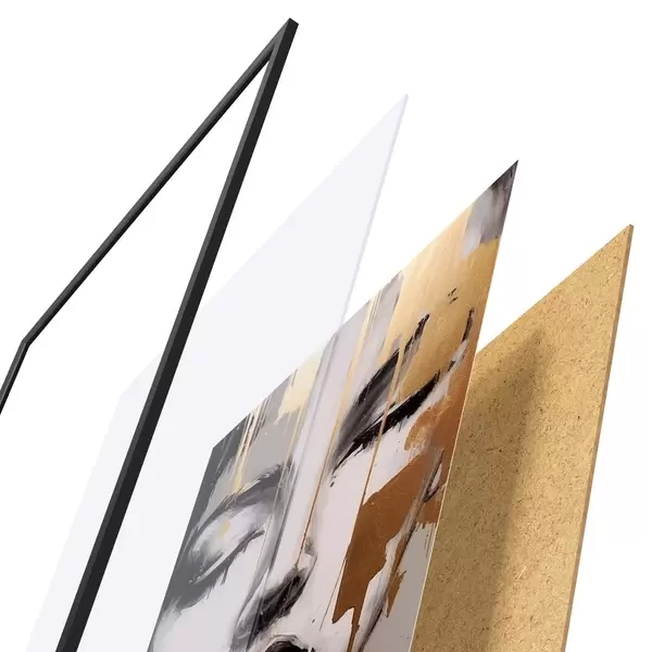 El póster consta de marco, plexiglás, imagen impresa y soporte de aglomerado. El póster puede colgarse inmediatamente en la pared gracias a los soportes de la parte posterior.