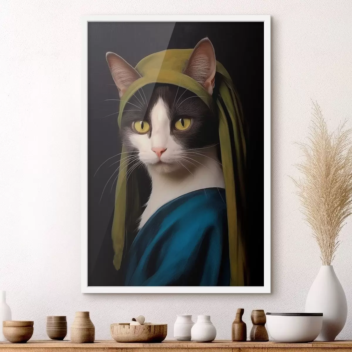 Poster Gato en estilo retrato con pendiente de perla Nr f42486
