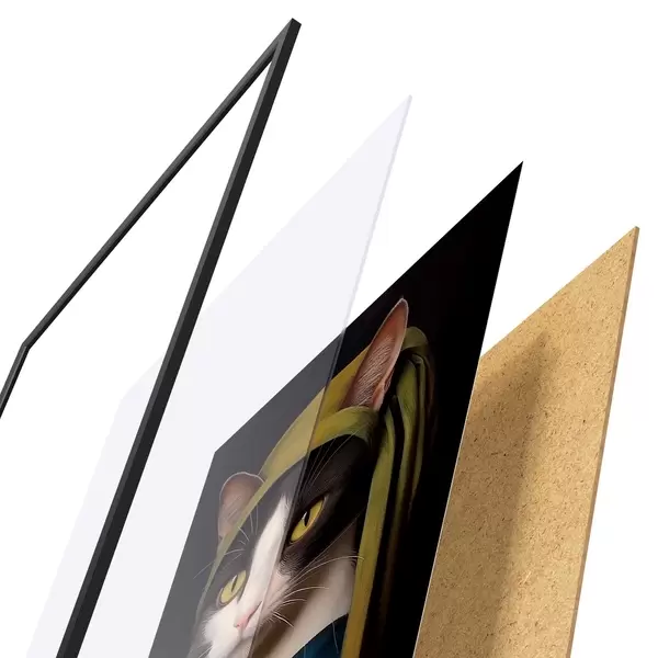 El póster consta de marco, plexiglás, imagen impresa y soporte de aglomerado. El póster puede colgarse inmediatamente en la pared gracias a los soportes de la parte posterior.