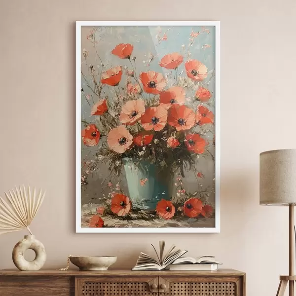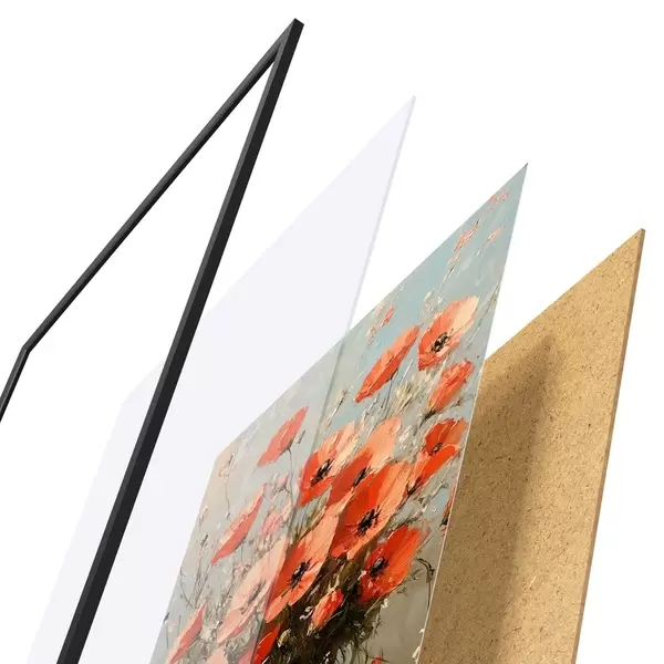 El póster consta de marco, plexiglás, imagen impresa y soporte de aglomerado. El póster puede colgarse inmediatamente en la pared gracias a los soportes de la parte posterior.