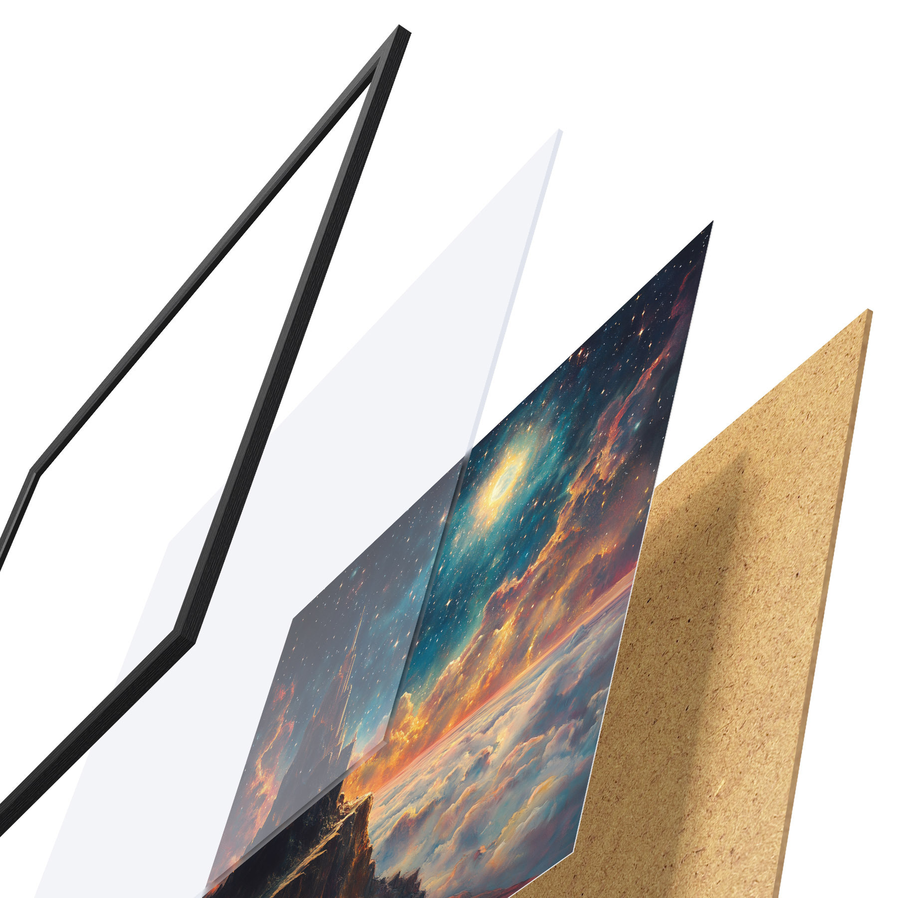 El póster consta de marco, plexiglás, imagen impresa y soporte de aglomerado. El póster puede colgarse inmediatamente en la pared gracias a los soportes de la parte posterior.