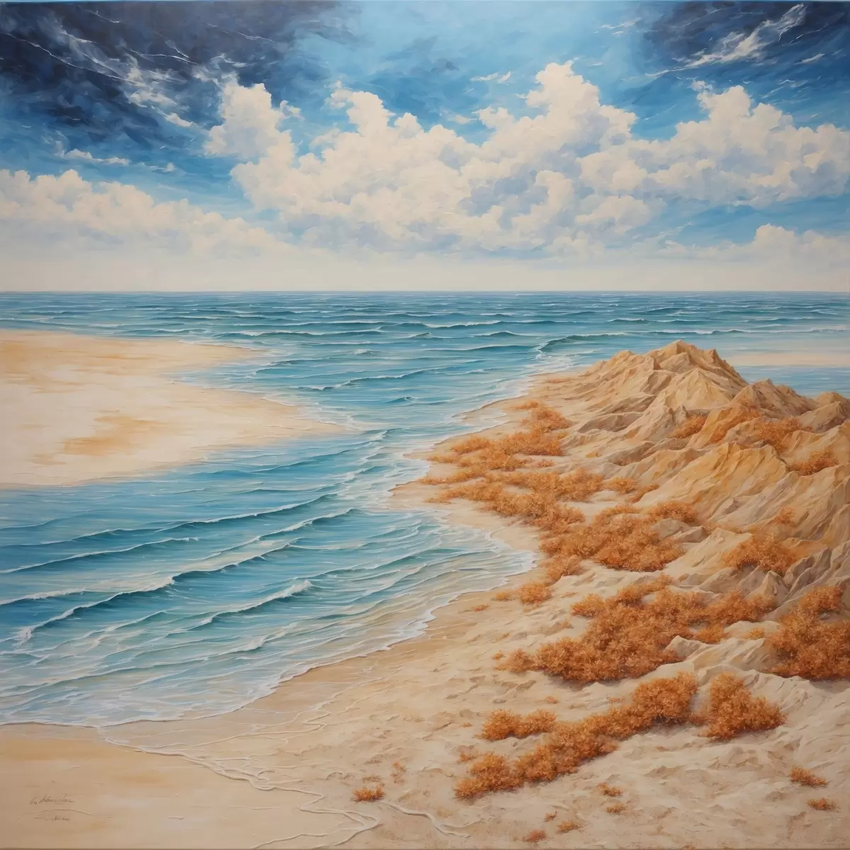 Poster Playa y cielo azul en estilo de pintura acrílica f42518