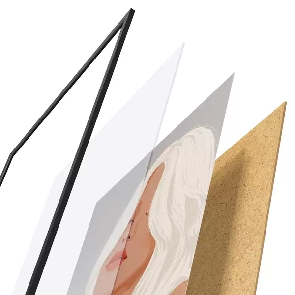 El póster consta de marco, plexiglás, imagen impresa y soporte de aglomerado. El póster puede colgarse inmediatamente en la pared gracias a los soportes de la parte posterior.