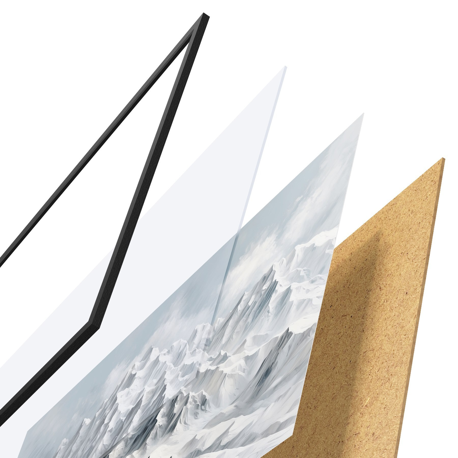 El póster consta de marco, plexiglás, imagen impresa y soporte de aglomerado. El póster puede colgarse inmediatamente en la pared gracias a los soportes de la parte posterior.