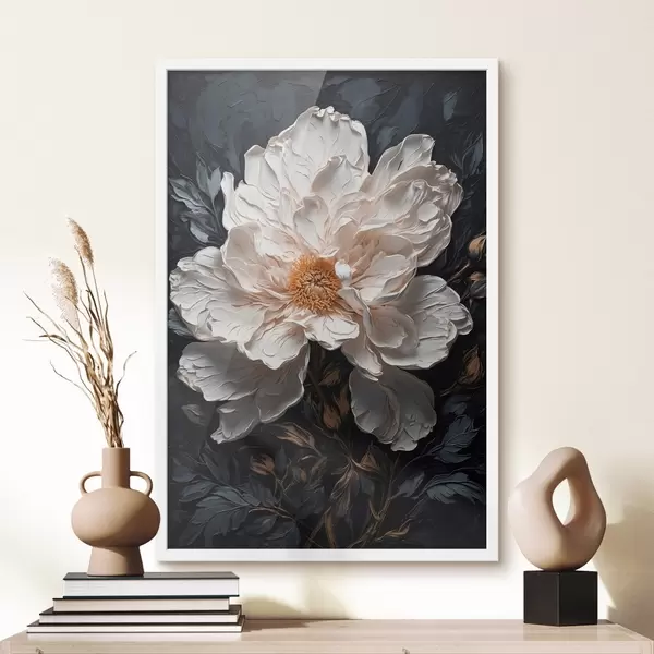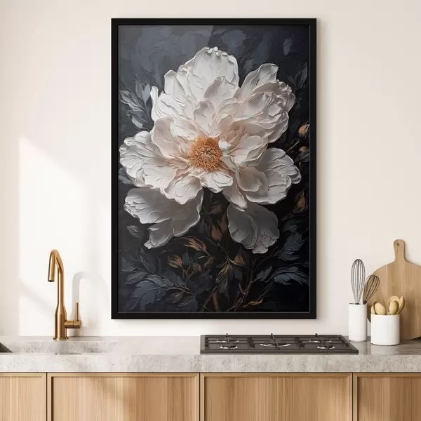 Poster Flor blanca sobre fondo negro al óleo f42544