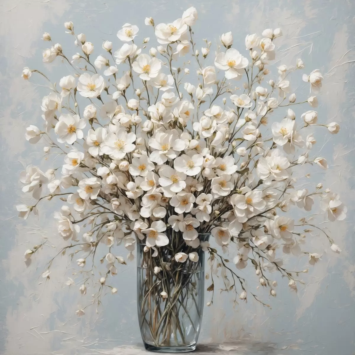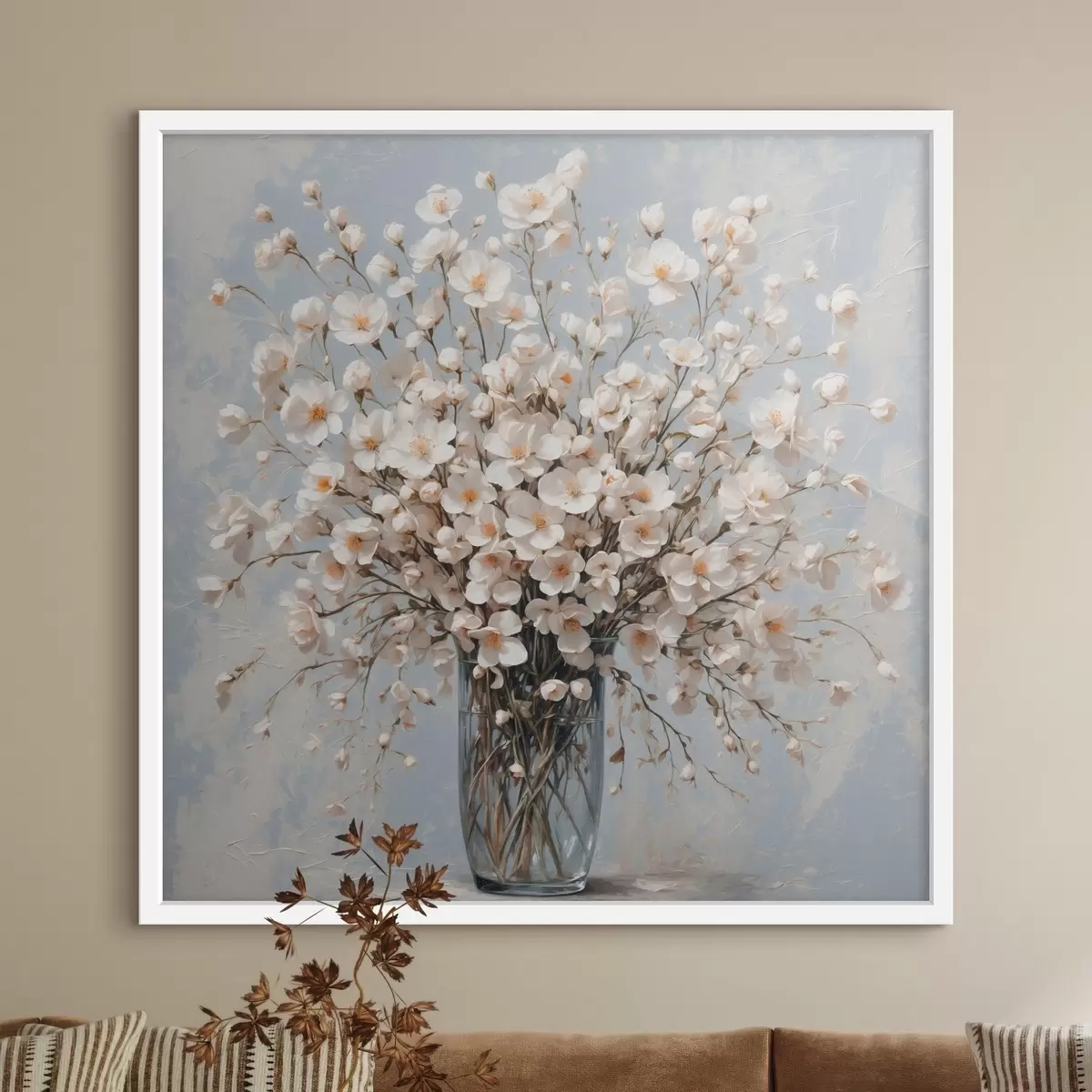 Poster Flores blancas en jarrón transparente. Nr f42547