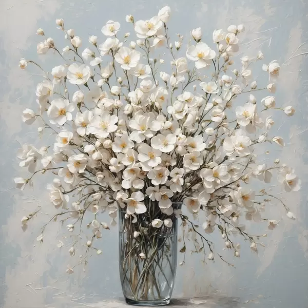 Poster Flores blancas en jarrón transparente. Nr f42547