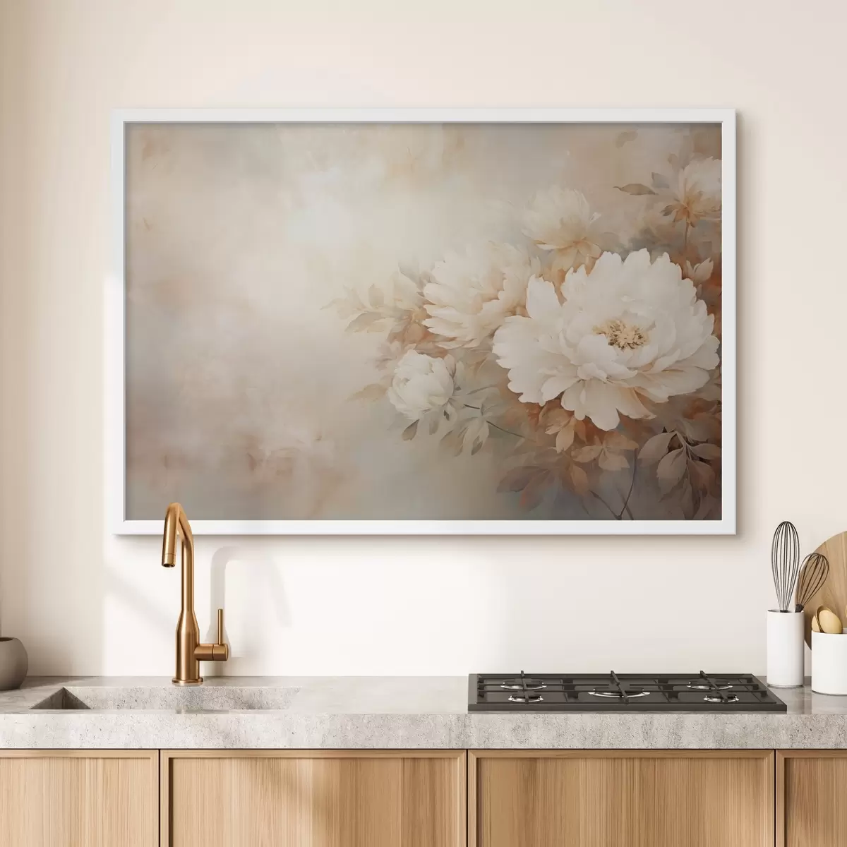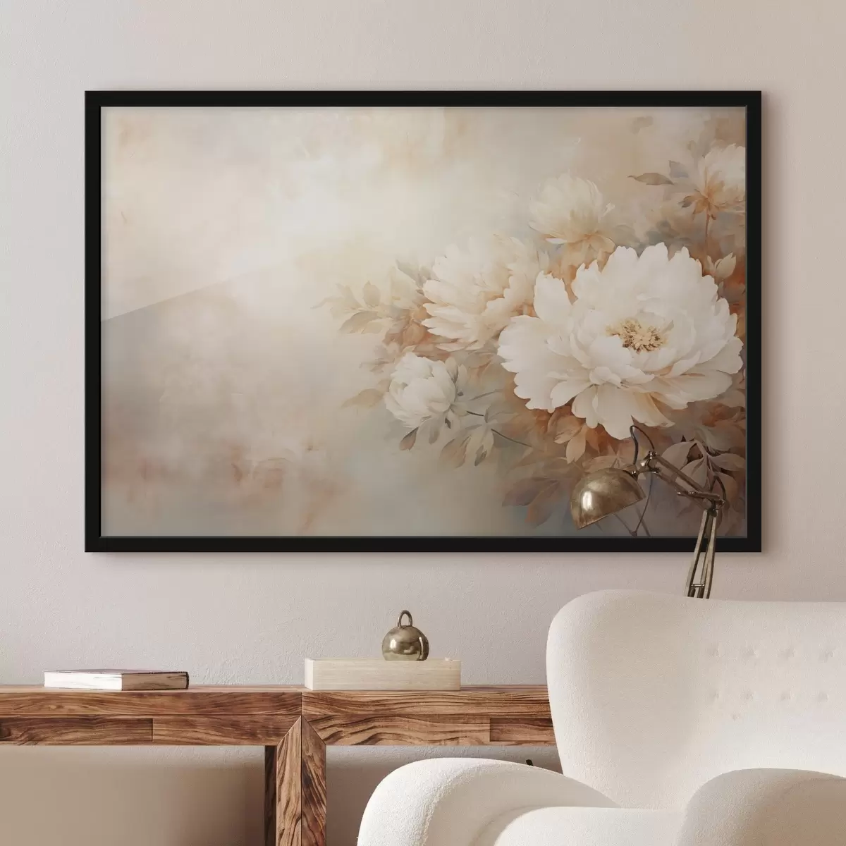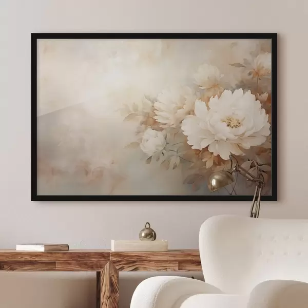 Poster Delicadas peonías en tonos crema pastel sobre un fondo difuminado, creando un ambiente suave y romántico. Nr f42558