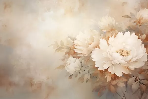 Poster Delicadas peonías en tonos crema pastel sobre un fondo difuminado, creando un ambiente suave y romántico. Nr f42558