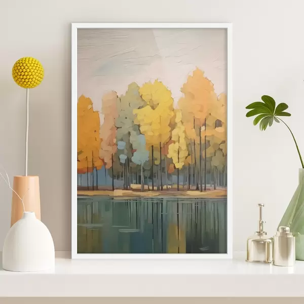 Poster Arboleda otoñal junto al estanque imitación de pintura Nr f42586