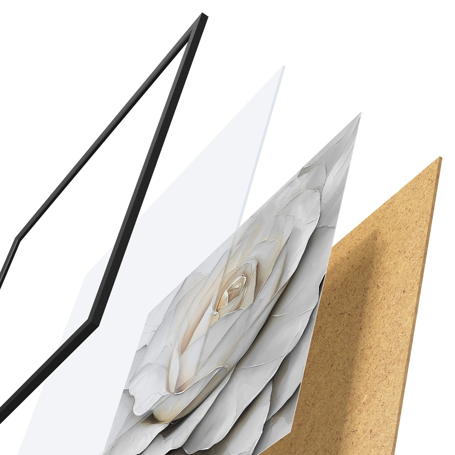 El póster consta de marco, plexiglás, imagen impresa y soporte de aglomerado. El póster puede colgarse inmediatamente en la pared gracias a los soportes de la parte posterior.