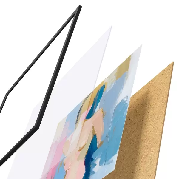 El póster consta de marco, plexiglás, imagen impresa y soporte de aglomerado. El póster puede colgarse inmediatamente en la pared gracias a los soportes de la parte posterior.
