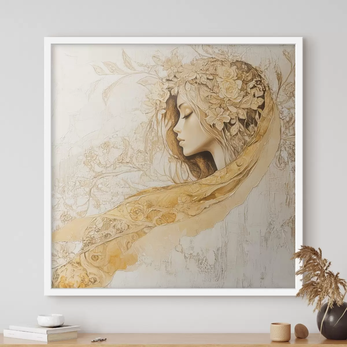 Poster Muchacha suave en el estilo de la pintura al óleo con flores f42616