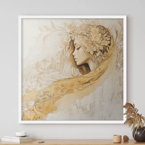 Poster Muchacha suave en el estilo de la pintura al óleo con flores Nr f42616