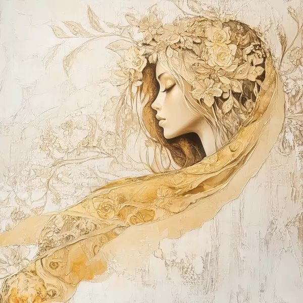 Poster Muchacha suave en el estilo de la pintura al óleo con flores Nr f42616