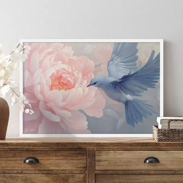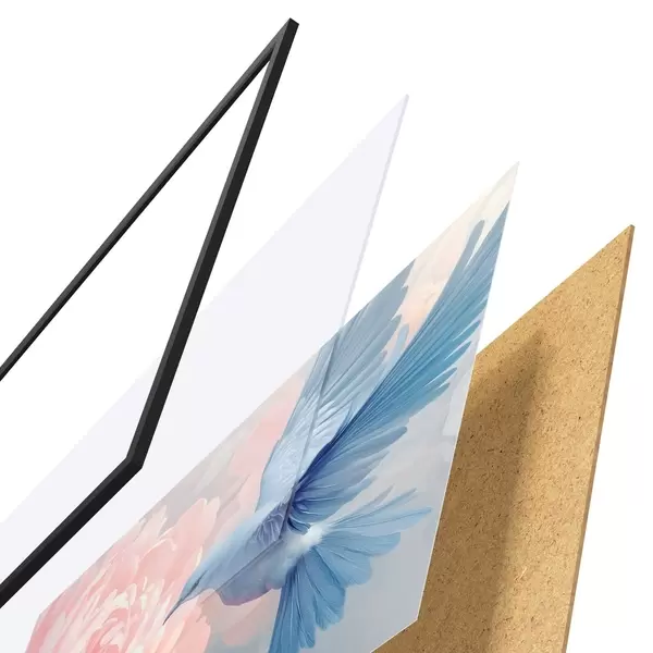 El póster consta de marco, plexiglás, imagen impresa y soporte de aglomerado. El póster puede colgarse inmediatamente en la pared gracias a los soportes de la parte posterior.