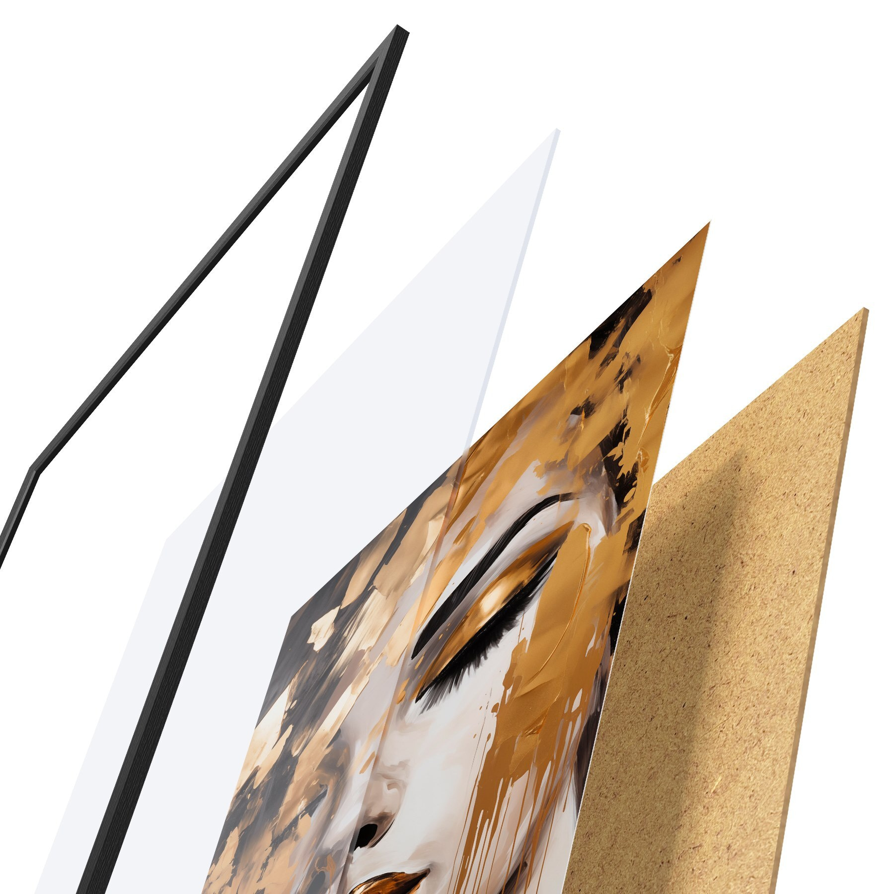 El póster consta de marco, plexiglás, imagen impresa y soporte de aglomerado. El póster puede colgarse inmediatamente en la pared gracias a los soportes de la parte posterior.